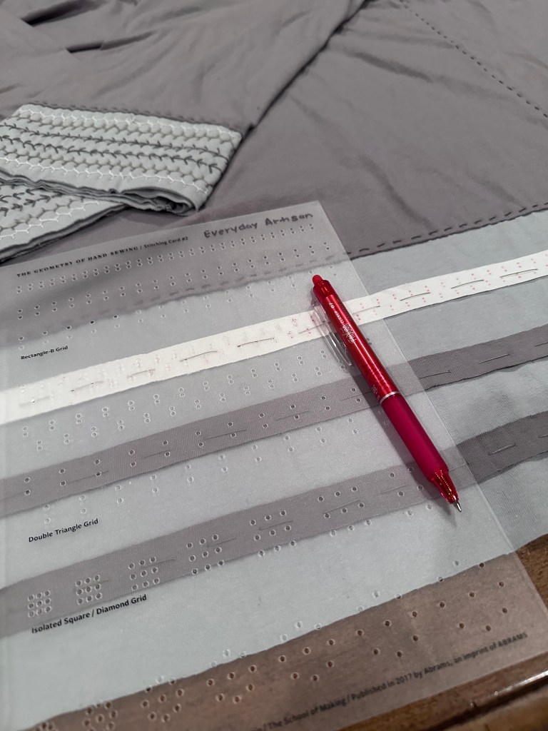 Then I had to use my grid guide to mark where to make my even Cretan stitches using an erasable pen