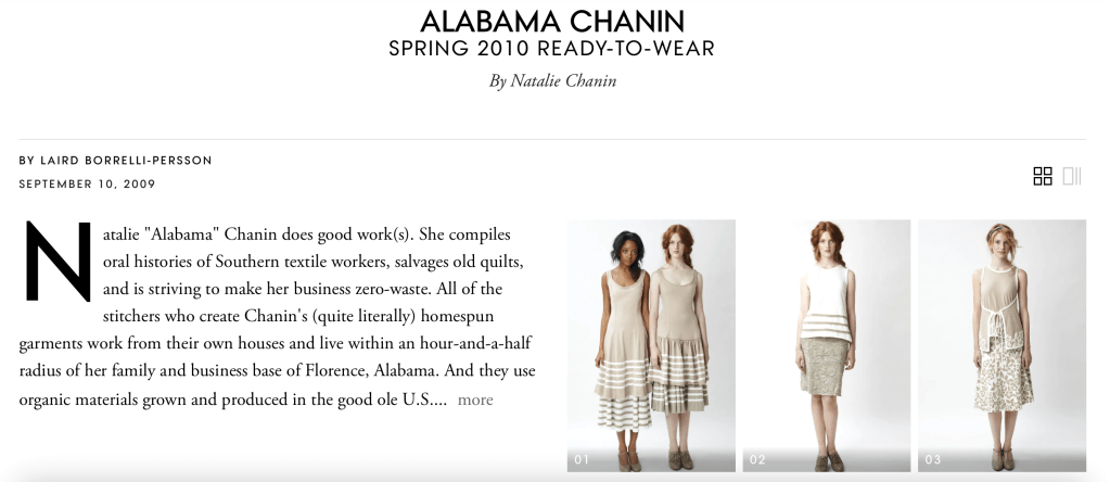 Some of my favorite pieces of Alabama Chanin are from years ago when Natalie was using stripes attached with the Cretan stitch – I believe it was the 2010 Spring Ready-To-Wear
